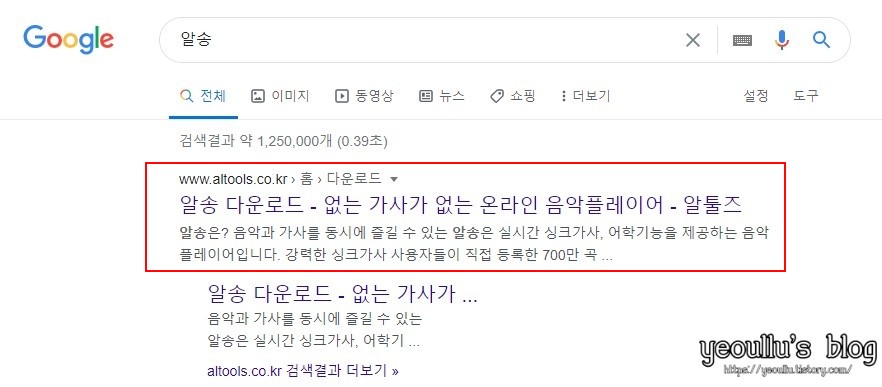 알송을 다운로드 받기 위해 구글에서 [알송]을 검색해주세요.