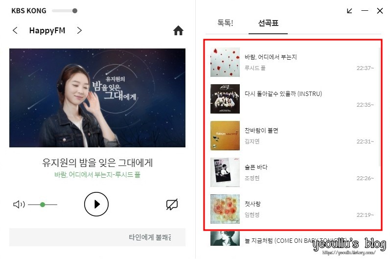 KBS 라디오를 인터넷으로 들을 수 있는 방법에 대해 알아보았습니다. 관심 있으신 분들은 위 포스팅을 참고하시어 콩 앱을 다운로드 받아보세요.~ 별다른 설정이 필요없어 매우 편리하게 들을 수 있어 좋았습니다. ^^